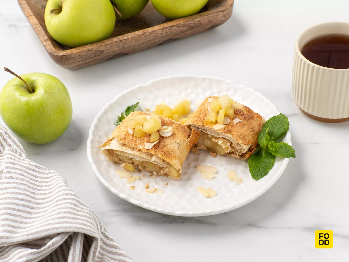 Очень простой штрудель с яблоками можно приготовить, если вместо теста в качестве основы взять обычный армянский лаваш. Единственная сложность в этом способе заключается в том, что сок от начинки может пропитать тонкую основу и испортить ее. Для этого обязательно посыпьте лаваш измельченным печеньем или панировочными сухарями. Они впитают лишнюю жидкость от фруктов. Ингредиенты: Для подачи: