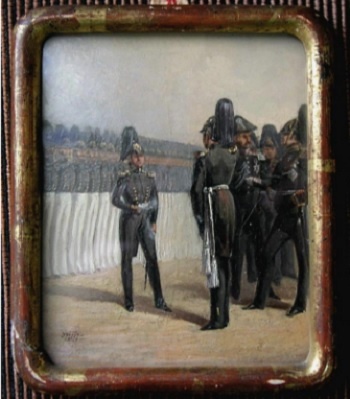В Удмуртском республиканском музее изобразительных искусств есть небольшая картина, аннотированная как «Сцена военного смотра». Известна точная дата создания – 1845 г. и автор – некий Gritte.