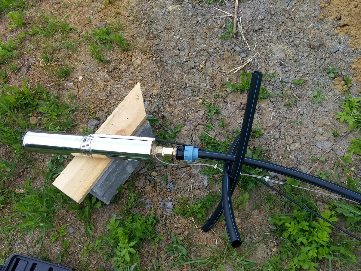 В итоге взял надежный насос Водолей БЦПЭ 0,32 - 63 У, заказал вместе с ГА, трубой ПНД 32-2.4 мм, + автоматика, фитинги, и все что необходимо. Но как оказалось планирую одно но по месту приходят мысли что-то изменить, в итоге ездил на местные рынки докупаться, фитинги и переходники, тройники для ПНД, хотел купить трубы ПНД (был непредвиденный расход для прокладки кабеля под дорогой и для ввода к дому), в последний момент обратил внимание на толщину стенки, она оказалась 2 мм., объездил все магазины в округе, не нашел, съездил в Серебряные Пруды, тоже нет, решил потом взять в Москве, но по месту изменил схему и хватило... Сделал крепления на лест