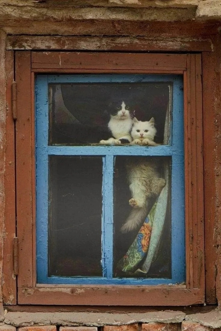 Я грешна этим - пока иду по улице заглядываю в чужие окна. Вы так не делаете? Я заглядываю не для того, чтобы подсматривать за жильцами этих квартир или домов. Наоборот, силуэты и тени людей заставляют опустить взгляд и просто пройти мимо. Мне нравится рассматривать, какие цветы стоят на подоконниках. Какие шторы, люстры или обои выбраны для украшения интерьера. Иногда на окнах встречаются интересные или необычные решетки, рамы или жалюзи. Но самое забавное в окнах - это животные. Очень часто на подоконниках стоят клетки с птичками. Реже - аквариумы с рыбками или черепахами. Но чаще всего в окнах сидят ... коты. Пожалуй, это самый милый декор окна, даже если оно старенькое и требует обновления. Для котов - это своеобразный телевизор. Пока они сидят в одиночестве дома, то из развлечений у них либо беспробудный сон, чтобы потом ночью были силы устраивать тыгтыгыдык. Либо можно сесть уютненько на подоконник и смотреть на суету этих забавных лысых кожаных человеков. И тут то и наступает