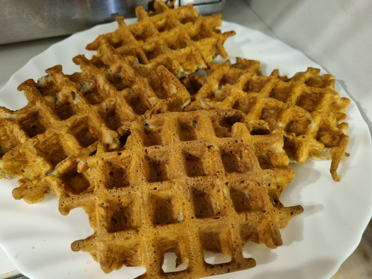 Ингредиенты: Картофель трем на мелкой терке, хорошо отжимаем, добавляем яйца, сметану, соду, соль, хорошо перемешиваем. Всыпаем муку и еще раз мешаем)) Выпекаем в вафельнице. У меня вафли пекутся 4 минуты. Замечательная основа для бутербродов! Просто шикарная! Верьте мне))))