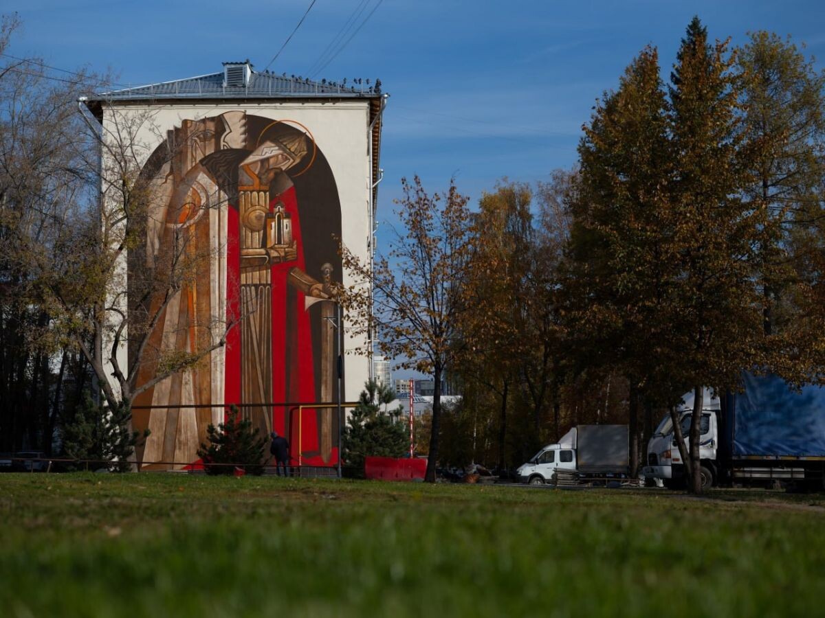 Владимирский художник-монументалист Кирилл Ведерников воссоздал облик Александра Невского на одном из зданий Екатеринбурга. В группе «Вязники & Ярополч.ру» появились фотографии арт-объекта, который находится около входа в Александро-Невский собор. Автор выполнил работу в иконописном стиле в духе русского авангарда. Для образа художник использовал пастельную палитру с добавлением ярких лаконичных пятен. (Фото: Вязники & Ярополч.ру / источник). Кирилл Ведерников считает образ Александра Невского близким хранителю духовного пространства нашей культуры. Художник не стремился к портретной схожести своего арт-объекта. Его работа носит символическое прочтение. (Фото: Вязники & Ярополч.ру / источник). В 2023 году Кирилл Ведерников создал картину «Хранитель» на фасаде дома № 1 на Вокзальном спуске. По словам художника, она соединяет в себе символы древнерусской дохристианской и христианской традиции. Слева на фреске изображен Лев - символ княжеской власти Древней Руси, олицетворяющий силу, кра