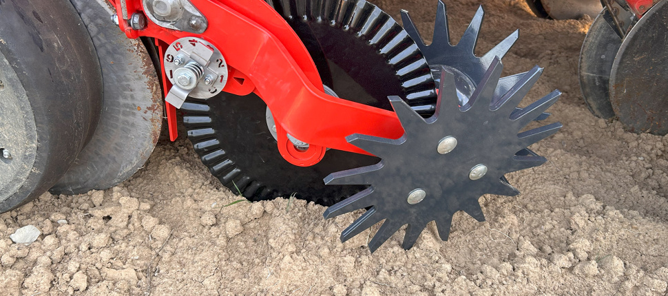 Новый прорезающий дисковый нож с удалителем пожнивных остатков теперь доступен на сеялках точного высева MAXIMA 3. Сеялка MAXIMA 3 с давлением заглубления в 180 кг способна теперь работать в условиях «без вспашки» или прямого посева, что не требует усиленного заглубления. Добавление данной опции позволяет лучше проникать в почву и сохранять глубину посева, в том числе на неровных участках. Помимо ограниченного износа других частей техники, таких как открывающие диски или высевающий сошник, прорезающий дисковый нож также помогает снизить вибрацию модуля в данных специфичных условиях, тем самым повышая точность высева: единичность (без двойников/пробелов) и укладку семян. Специальные удалители пожнивных остатков в форме звёздочки расположены в передней части диска для безупречной очистки линии посева при любых растительных остатках. С плавающей позицией и фиксацией регулируемым нижним упором, нет необходимости использовать инструмент для быстрого изменения их рабочего положения в полевых