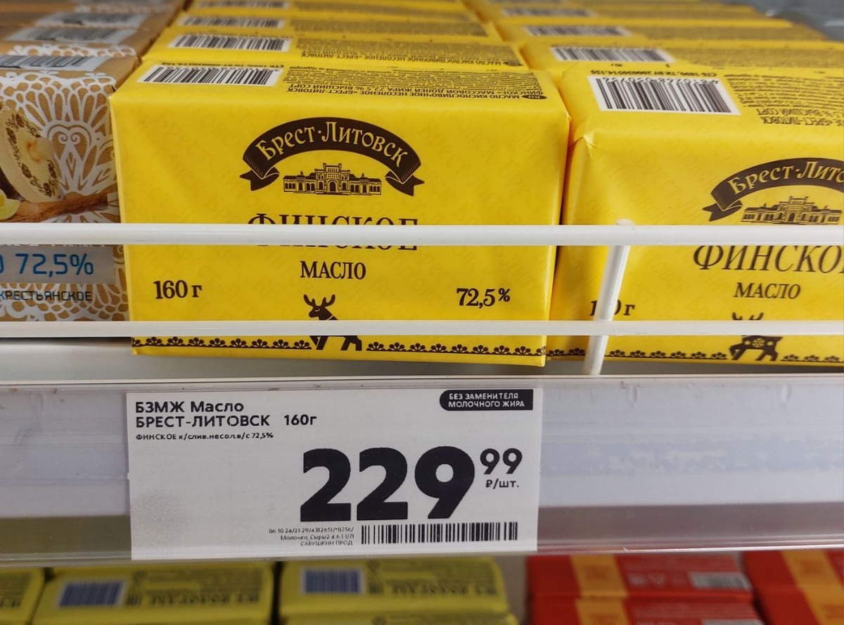 Недавно писал про то, что в некоторых российских магазинах на пачки сливочного масла начали надевать «антикражные» пластиковые коробки. Теперь поступили очередные новости об этом важном продукте питания. 160-граммовые пачки сливочного масла стремительно вытесняют стандартные 180-граммовые. В некоторых российских сетевых супермаркетах полки уже почти полностью заняты облегченными пачками. Вероятно, скоро увидим и пачки по 150 и 120 граммов. А в чем же дело? Дело – в рекордном росте цен. Даже Росстат вынужден признать, что ТОЛЬКО ЗА СЕНТЯБРЬ сливочное масло подорожало на 4,3%. За один месяц. А с начала года рост цен и на сливочное масло, и на многие другие молочные продукты уже исчисляется десятками процентов! Чтобы люди не падали в магазинах в обморок от роста цен, капиталисты давно придумали приемчик, который называют шринкфляцией. Прием заключается в снижении массы, объема, количества товара в упаковке при сохранении привычной цены. Так покупатель может некоторое время почти не замеча