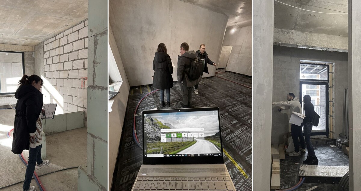 Первый важный выезд дизайнера на авторский надзор происходит после возведения и оштукатуривания стен. В проекте закладывается стандартная толщина штукатурки на стенах в то время, как, в процессе ремонта эта толщина может меняться из-за кривизны стен и перекрытий. Изменение базовых размеров на 1-2 сантиметра могут привести к изменению раскладки плитки, расположению молдингов на стенах, изменени