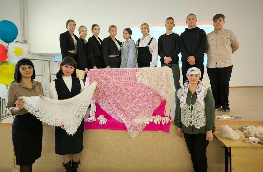 В Краснокоммунарской средней школе Сакмарского района для учеников 8-х классов, сегодня, в день Покрова Пресвятой Богородицы прошел краеведческий урок. Мероприятие провела Голнур Явлатовна Шантава, известная пуховязальщица. Имя этой женщины славится оригинальными работами далеко за пределами Оренбургской области. Платки, которые она вяжет носят и за границей, в Словении – на Родине у Голнур Явлатовны. На краеведческом уроке ребята познакомились с азами пуховязания. Мастерица показала, как прядут пух на старорусской прялке, как чешут его, делают нить, показала свои работы и с радостью ответила на интересующие вопросы. Ребята сами попробовали свои силы в вязании. Ученики и педагоги поблагодарили Голнур Явлатовну за интересный и познавательный урок! Фото: Краснокоммунарская средняя школа
