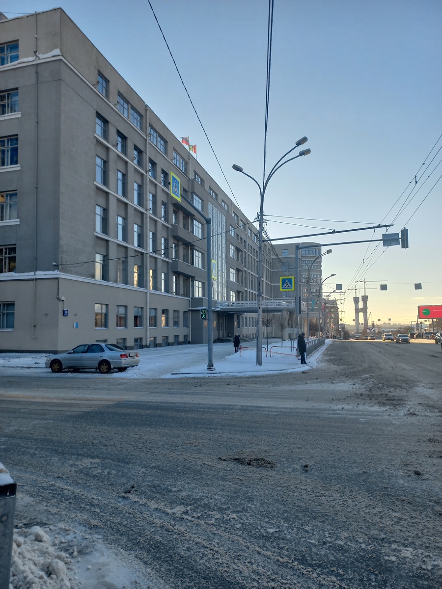И, наконец, на данном перекрестке стоит лицей №12. Изначально здание учебного заведения было построено по проекту знаменитого архитектора Крячкова в 1912 году. Однако до наших дней здание не сохранилось в первозданном виде. Сильно изменила облик пристройка к школе, сделанная в 2009 году. Не могу сказать, что она прям изуродовала здание. В целом ее вид вполне нейтрален. Но изначальный замысел архитектора больше не читается.