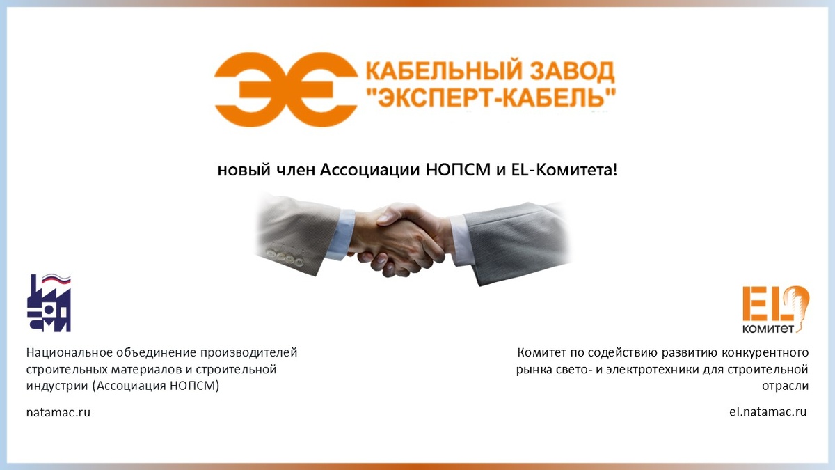 На сегодняшний день ООО «КЗ Эксперт-Кабель» – современное многофункциональное предприятие полного цикла, обладающее мощностями по собственному медеплавильному производству, металлопрокату, изготовлению широкого ассортимента кабельно-проводниковой продукции, как стандартных, так и уникальных марок для всех отраслей промышленности. Отметим, что вступление компании «Эксперт-Кабель» в состав EL-Комитета НОПСМ – осознанное и зрелое решение. В планах руководства Компании на ближайшее время – подтвердить имя добросовестного и ответственного производителя кабельной продукции, качество которой не будет вызывать вопросов со стороны потребителей и отраслевых объединений. В рамках интеграции ООО «КЗ Эксперт-Кабель» в деятельность EL-Комитета НОПСМ уже реализуется совместная программа мероприятий, предусматривающая проведение комплексного аудита производства и контроля качества выпускаемой кабельной продукции. Поздравляем руководство и коллектив компании «Эксперт-Кабель» с этим замечательным событи