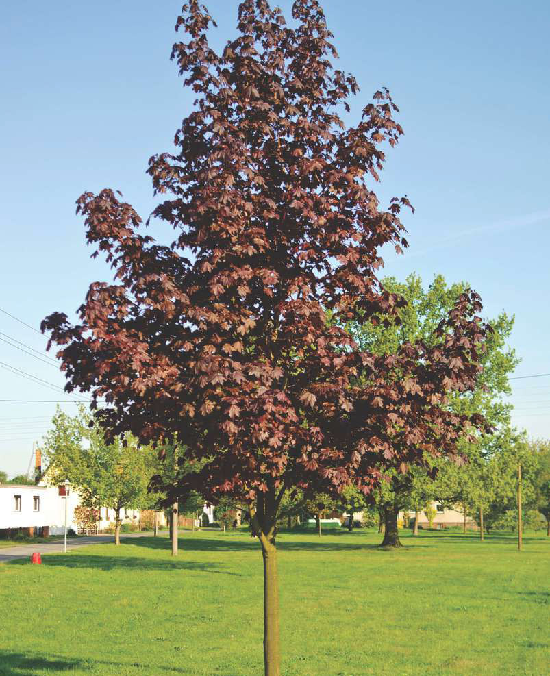 Описание: Клен остролистный «Royal Red» хорошо переносит суровые зимы, выдерживает морозы до -34°C, поэтому отлично подходит для участков в регионах с холодными зимами. Он также устойчив к жаре, что делает его универсальным растением для различных климатов.