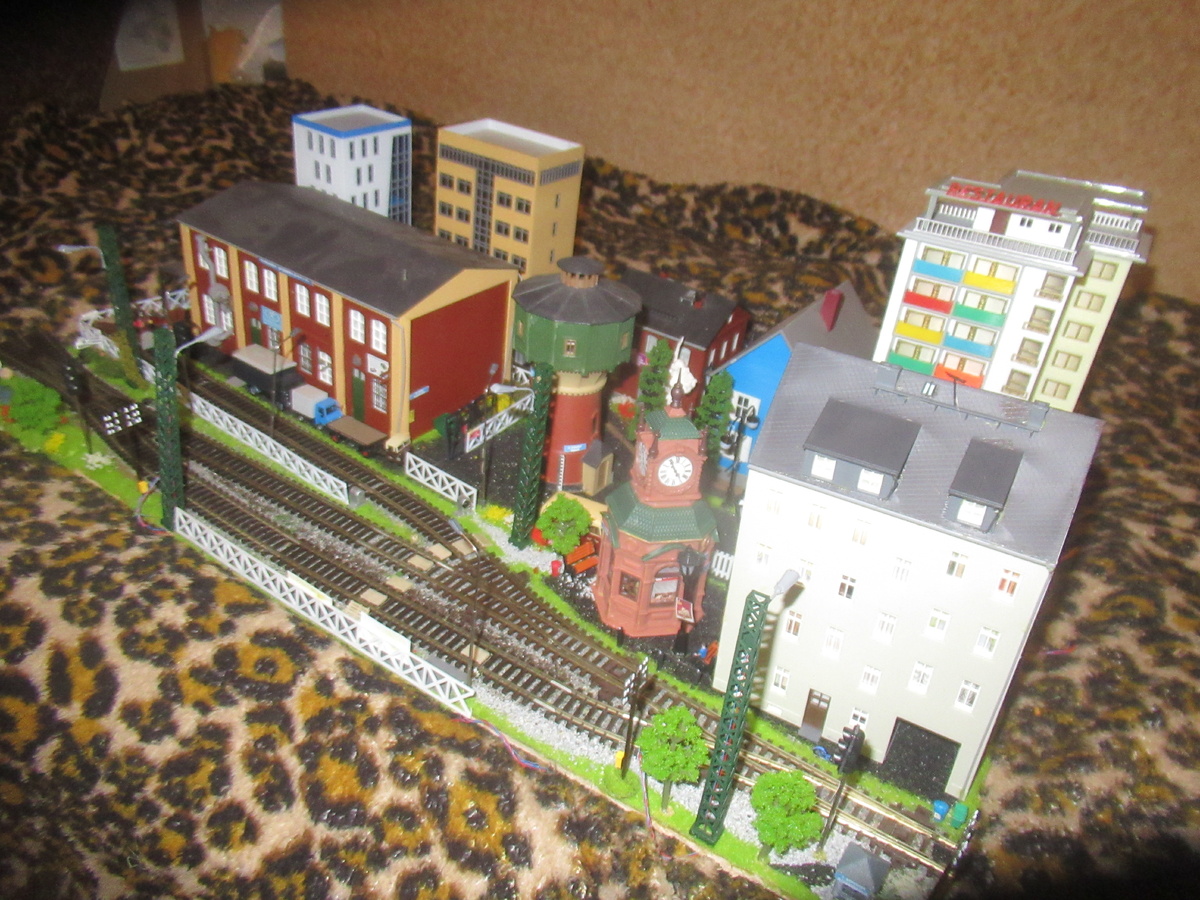 Новая диорама получила название "Узловая". К нашей тульской Узловой она никакого отношения не имеет, совпадения названия носят случайный характер, но только если реальная Узловая навеяла назвать диораму так. Дело в том, что с одной стороны диорамы железнодорожный путь заканчивается перекрестной стрелкой, от которой по легенде расходятся два направления - одно идет через диорамы Аннабург (два модуля), Сан-Мукачево, Петрушино, Д-штадт (Депо) и расходятся на Прирайфландский и Райфланд, второе через Алайский на Райфланд. А в Узловой эти два пути сходятся, конечно во многом мысленно, но это и дало название диораме. Узловая в моем мире имеет статус поселка.