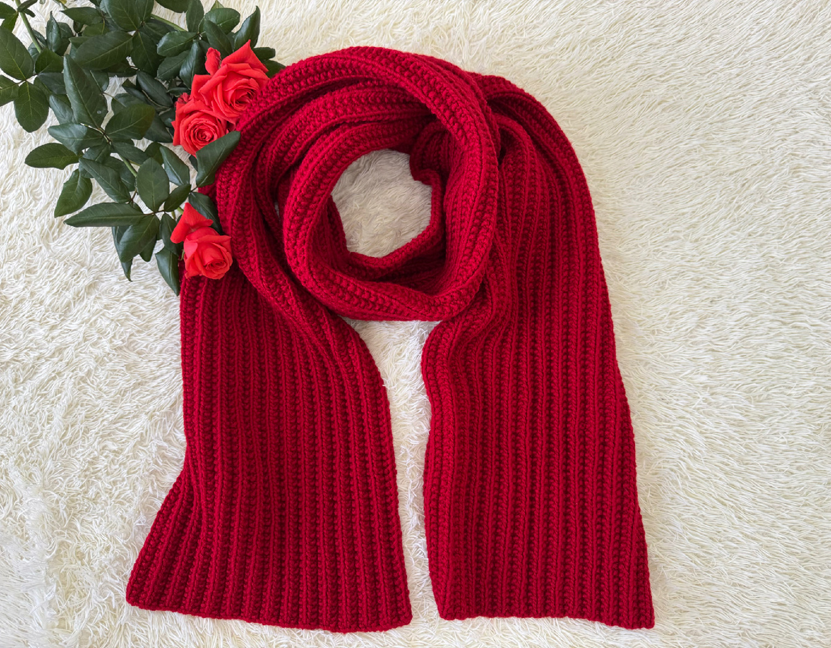 Шарф – это незаменимый аксессуар для тех, кто хочет всегда выглядеть стильно. Он может стать не только тем самым важным акцентом, который сможет завершить ваш модный образ, но и согреть в холодную погоду. Когда мне поступил заказ на длинный красный шарф из крупной вязки, не теряя времени, я с большим энтузиазмом сразу же принялась подбирать подходящую пряжу. Мотки Alize Superlana maxi с оттенком 56 показались мне идеальным вариантом. О своём выборе я не пожалела ещё в тот момент, когда забирала пряжу с пункта выдачи: нить плотная, однородная, имеет благородный и насыщенный красный цвет. Идеально подходит для объёмной вязки. Я осталась очень довольна качеством. По желанию заказчицы шарф должен быть около 2-х с половиной метров в длину и 39 сантиметров в ширину. Ширину я брала из расчёта, чтобы шарф можно было при желании набрасывать на голову, как капюшон. На готовое полотно шарфа мне понадобилось 10 мотков Alize Superlana maxi. С учётом того, что пряжа сама по себе яркая и насыщен