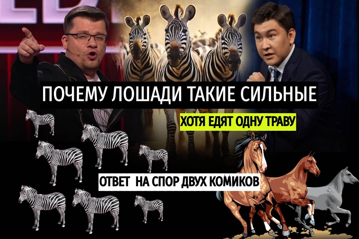 Почему лошадь такая сильная, хотя ест только траву? Ответ на спор Гарика Харламова с Азаматом Мусагалиевым.
