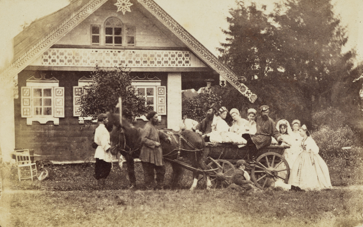 В день свадьбы дома у жениха собирались родственники и друзья. Собирался так называемый "поезд". В архивах именно так и сказано. Но с реальным поездом, который ездит по железной дороге, он никак не связан, просто имелось ввиду, что скоро они отправятся в поездку "за невестой". Когда все собирались, родители благословляли жениха и вместе с караваем сажали его на повозку, после чего все дружно ехали к невесте. Предварительно повозку нужно было перекрестить. Невесту оповещали о прибывающем "поезде" с женихом, после чего ворота ее дома затворялись, она садилась у печи и снова начинала "голосить".