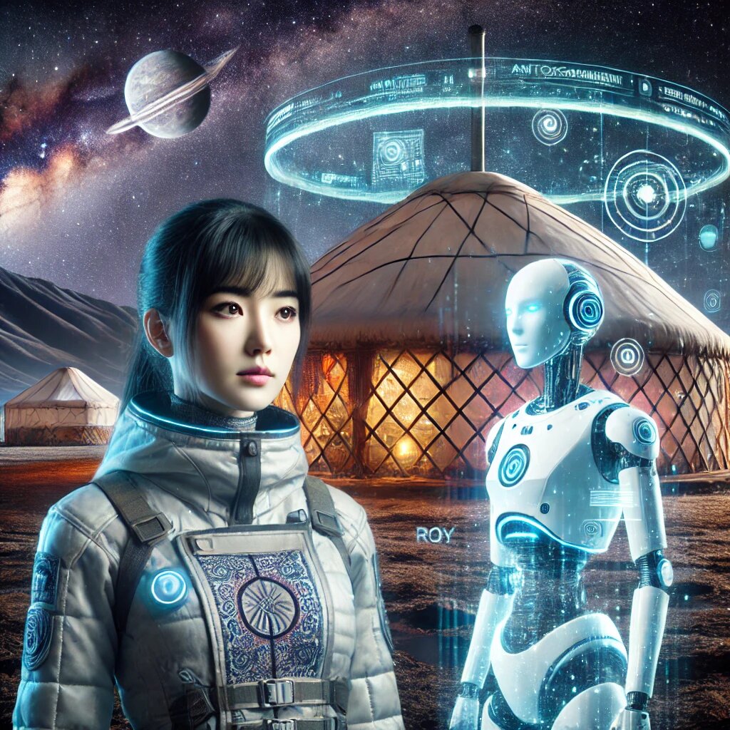 Азим вышла из юрты, одетая в традиционный костюм, но с элементами космической защиты. За ней последовал Рой, его голограмма слегка мерцала под влиянием местного магнитного поля.