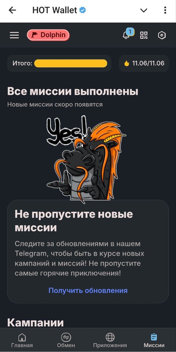 Вот несколько советов как повысить ваш уровень в HOT Wallet: 1. Проходим все компании в соответствующем разделе миссии (коды для компании с видео у меня в канале). Остальные компании сводятся к заданиям с пополнением и различным обменам. 2. В разделе приложения (DApps) находим HAPI score, нажимаем на минт каждой сети, смотрим ваш об