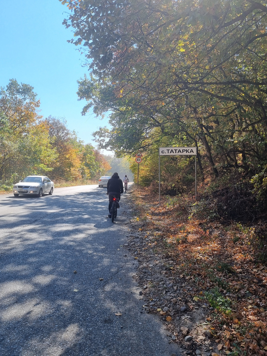 Осень радовала нас своими теплыми деньками, а тут вдруг решила удивить. Вчера в Москве выпал снег, а в Ставрополе температура опустилась до 10°. Но мы успели поймать последний тёплый денёк и почти всё время провели на улице, наслаждаясь осенней атмосферой. На первую половину дня у нас была запланирована велопоездка из Ставрополя в Татарку (Ставропольский край), а именно на территорию Мужского монастыря иконы Пресвятой Богородицы. Неоднократно слышала про это место, видела красивые фотографии. Знаменито оно тем, что здесь расположен Святой источник. Ребяяята, какое же там тихое и умиротворенное место. Оттуда уезжать не хочется. 12 октября 2024, +21° Наш маршрут начался от Южного рынка. Дорога хорошая и лёгкая. Это, действительно, была велопрогулка, т.к. ехали мы неспеша по основной дороге, наслаждаясь тёплым деньком. Доехали до указателя и повернули направо. Здесь и навигатор не нужен. Не ошибёшься. После поворота нас ждал подъём. На некоторых участках пришлось катить велосипеды.