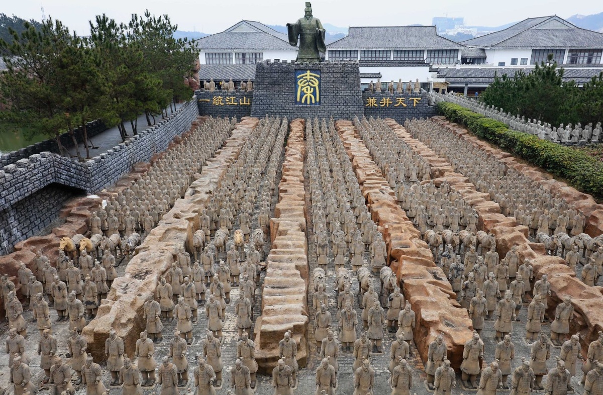 Терракотовая армия Древние китайцы верили в продолжение жизни после смерти. Поэтому умершего снабжали всем, в чем он нуждался и чем пользовался при жизни – это и пища, и изделия развлекательного характера, и бытовые предметы, слуги, охрана. Погребальный инвентарь императоров представлял собой бесценные сокровища, не имевшие себе равных. Терракотовая армия, охранявшая усыпальницу первого китайского императора Цинь Шихуанди на протяжении двух тысячелетий, была обнаружена случайно в 1974 году, когда китайский земледелец, копая колодец, наткнулся на глиняную человеческую голову, росшую прямо из земли. Крестьяне отнеслись к находке ответственно и сообщили о ней археологам. Так, через два тысячелетия, в наш мир вернулись примерно 8 тысяч статуй воинов сопровождавших в загробный мир императора Цинь Шихуанди первого правителя Китая, это очень приблизительный подсчет, поскольку статуи, по большей части, разбиты и требуют реставрации или сборки из осколков. Раскопки проводились в три этапа и с в