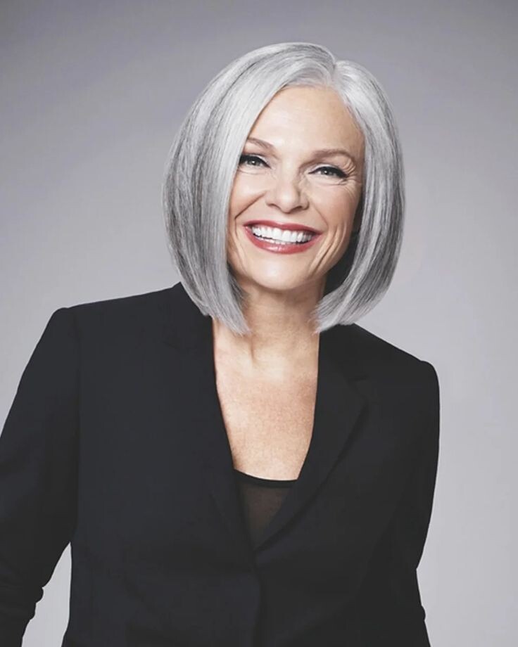 Седеющие волосы часто заставляют женщин задуматься о переменах в стиле. В моей практике встречался такой запрос, и мы успешно подстраивали стиль под такие перемены внешности. Первое — нужно решить, хотите ли вы закрашивать седину или носить ее с удовольствием? В зависимости от природного оттенка волос, могут быть разные решения. Если волосы светлые и средне-светлые, сложное мелирование поможет сделать визиты к парикмахеру более редкими, а седину — незаметной. Если природный оттенок темный, можно комбинировать стойкие окрашивания в привычный оттенок со спреями типа лореалевского Magic Retouch (на выход или если не успели вовремя закрасить седину).
