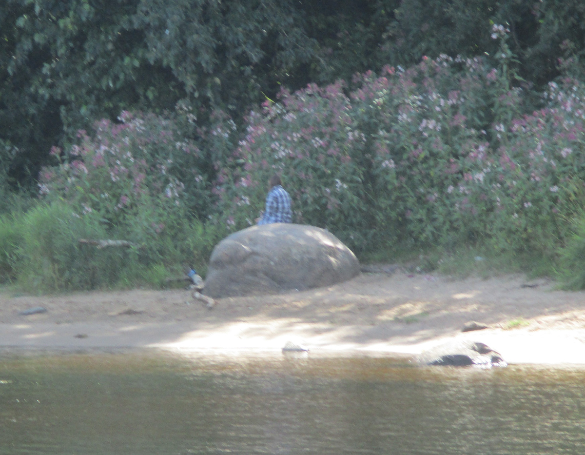 Шли мы как то в неясную , неприветливую , но не дождливую погоду по Свири . Обозревать окружающие картины было скучно , приелись. Но вдруг моему взору представился камень, прямо на траверсе . Был ли он тут ранее не помню, но сейчас взгляд цепко зацепился за него По лицу пробежало умиление. На камне сидела девочка. Она не читала , не загорала , просто сидела. Через двадцать дней шли обратно. Про девочку не думал не вспоминал, но она опять неожиданно попала в поле моего зрения. Посмотрел на нее и лишь подумал , та ли. В следующий поход мне стало интересно увижу ли ее. Но нет. Шел дождь. С той поры для себя я это место уже определяю названием Девочка на камне. Несколько раз проходили мимо или ночью или ранним утром, быть ее не могло и вот однажды этот участок проходили днем и я вспомнил про нее. Сказал Бобу, давай поспорим, что сейчас за поворотом будет камень на нем будет сидеть девочка. -С тобой спорить себя не уважать –сказал Боб и отмахнулся. Проходя мимо камня я почти силой повернул