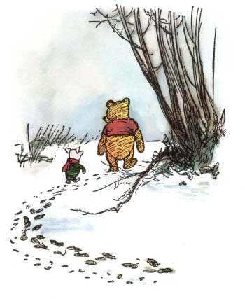 Внезапно Винни-Пух остановился и склонился озадаченно над следами.