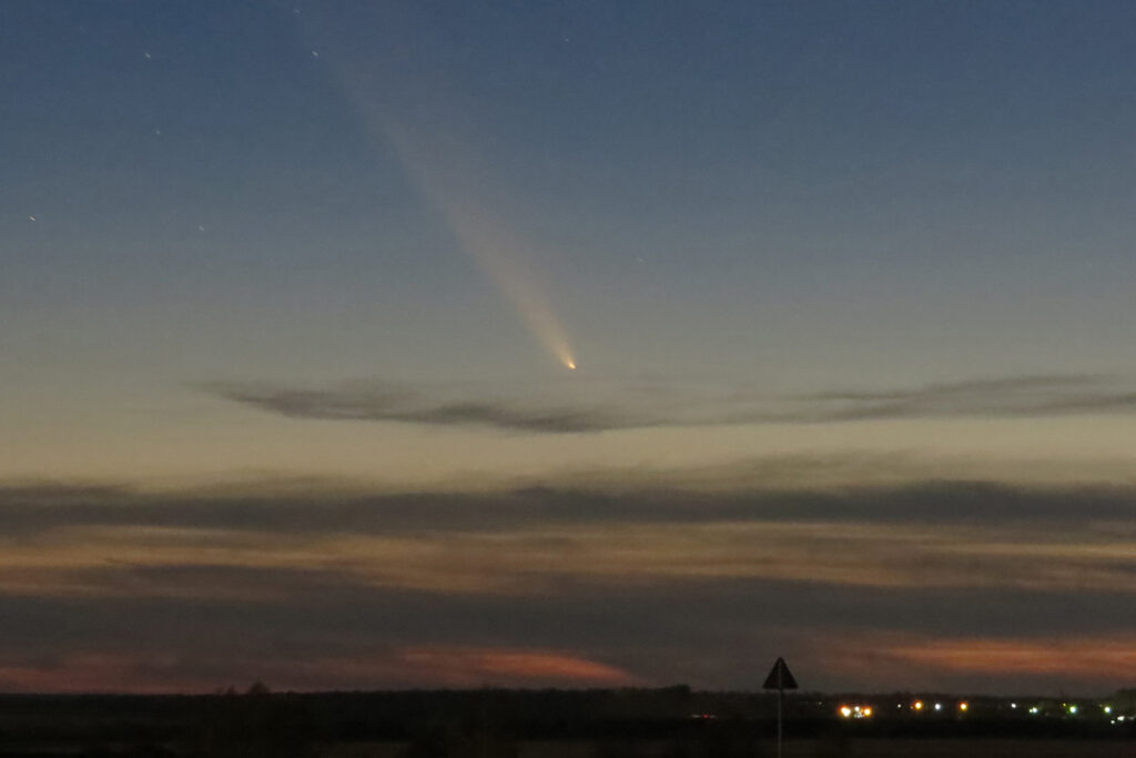 Комету C/2023 A3 (Цзыцзиньшань – ATLAS) наблюдали в небе над Нижегородской областью 13 октября. Снимками астрономов-любителей поделились в группе Нижегородского планетария в социальной сети. Напомним, небесное тело в России можно увидеть невооруженным глазом еще в течение 2-3 недель. Вечером 13 октября Цзыцзиньшань – ATLAS видели жители нескольких районов Нижегородской области без специальной аппаратуры. Например, ее сняли на небосклоне над Спасским районом. Комету заметили и в столице Приволжья, но облачность и городская засветка мешали наблюдениям. У нижегородцев еще будет шанс увидеть комету примерно до 30 октября. С каждым днем она будет подходить все ближе к линии горизонта.