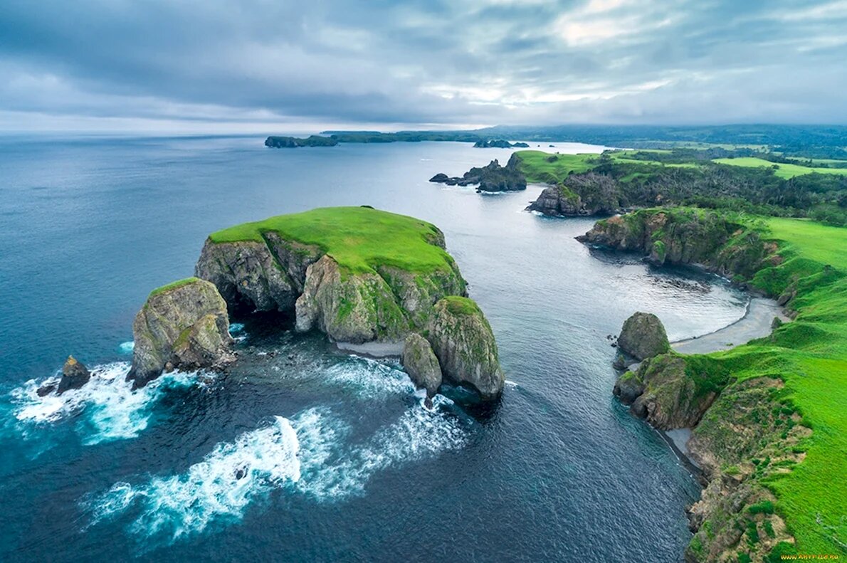 Курилы, наряду с Камчаткой, получили название Края Света. Эта группа мелких островов, изогнувшись дугой, растянулась по Тихому океану, образуя восточную границу России. Хотя на карте архипелаг выглядит довольно компактно, его реальная длина достигает 1200 км! Шикотан — самый крупный остров в составе Малой Курильской гряды. Курилы являются частью Сахалинской области и делятся на две основные группы: Большую и Малую Курильские гряды. Большая гряда состоит из трёх подгрупп — Северной, Средней и Южной. Малую Курильскую гряду отделяет от Большой Южно-Курильский пролив, а её размеры значительно скромнее — всего около 100 км. Архипелаг включает в себя шесть крупных и множество мелких островов. Шикотан, находящийся на северной оконечности гряды, выделяется своими внушительными размерами. Его название образовано из двух айнских слов: «ши» — большой и «котан» — поселение. Айны — местный народ, проживавший здесь с древних времён. Остров имеет слегка вытянутую форму: его длина составляет 27 км, а