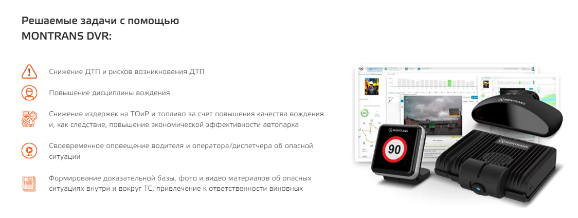 «Друзья, всем привет! Сегодня я вам расскажу про чудо техники – умную видеосистему Montrans DVR! Почему умную, спросите вы? Да потому, что камера сканирует 400 точек на лице человека и помогает водителю избежать опасных ситуаций. Это как второй пилот, который никогда не спит и всегда контролирует обстановку и в кабине, и вокруг автомобиля. Оказывается, курить нельзя не только детям, но и взрослым, особенно, если они находятся за рулем. Если вы захотите поговорить по телефону, интеллектуальная камера предупредит вас, что делать этого не стоит. А самое главное, если вы начнете зевать или на 2 секунды закроете глаза, умный девайс вас мгновенно приведет в чувства и посоветует отдохнуть прежде, чем садиться за руль. А вот вторая интеллектуальная камера следит за обстановкой перед машиной. Система предупредит водителя о возможном столкновении с каким-либо объектом. Камера распознает перед автомобилем пешехода, даже если он будет на с