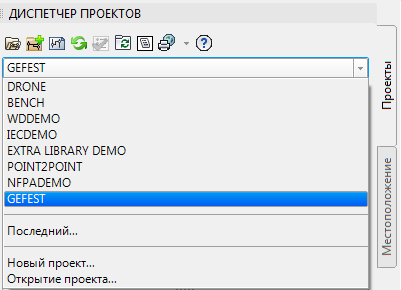 AutoCAD Electrical — это система, работающая с проектами. Проект определяется текстовом ASCII файлом с расширением .wdp, который по умолчанию сохраняется в папке проекта. Данный файл содержит сведения о проекте, параметры проекта и имена файлов документов проекта. Файл проекта обновляется при добавлении и удалении документов проекта, изменении их порядка и структуры папок, обновлении свойств проекта и других операций. Для создания новых проектов, доступа к существующим проектам, добавления документов в проект и для изменения информации, связанной с проектами, используется «Диспетчер проектов», который по умолчанию отображается в левой части экрана. Он может быть закреплен в любом другом месте или скрыт до тех пор, пока не потребуется к нему обратиться. «Диспетчер проектов» можно закрыть, щелкнув по крестику в правом верхнем углу. Для отображения «Диспетчера проектов» используется команда «Диспетчер», расположенная на панели «Инструменты проекта» вкладки «Проект» ленты, а также на панел