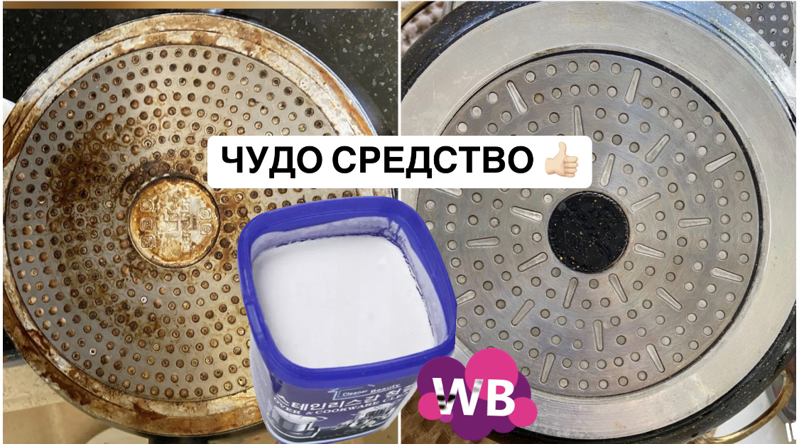Привет, дорогие друзья 🍂 Часто ли вы сталкиваетесь с нагаром, ржавчиной и другими стойкими загрязнениями на посуде? Хотела бы отметить, что мои статьи не спонсированы. Здесь я честно выражаю свое мнение и делюсь с вами понравившимися вещичками. Как и многие, в борьбе с жиром я пробовала все народные методы: и соду, и зубную пасту, и уксус - все безуспешно! А недавно пришла в гости к подруге, и та хвасталась мне как чудесно отмыла свои старые сковороды, противни и духовку. А на вопрос как ей это удалось она показала мне баночку с пастой. Поначалу я удивилась, упаковка очень необычная с иностранными иероглифами, подумала, дорогущее импортное средство. Но подруга порадовала, паста и правда зарубежная, до достать его легко - на Wildberries и стоит недорого👍🏻 Я заказала в этот же вечер и сама убедилась в результате. У меня скопилось много посуды и приборов «на выброс», которые получили новую жизнь. Особенно рада, что очистила советские сковородки, они настолько качественные и родные. В н