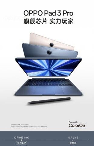 OPPO подтвердила информацию о скором выпуске нового планшета OPPO Pad 3 Pro, после того как появились слухи об этом. Компания также выпустила рекламный тизер, в котором показаны дизайн и цветовые решения устройства. На изображении видно, что OPPO Pad 3 Pro будет доступен в двух цветах: тёмно-синем и бежевом. Планшет поддерживает работу с клавиатурой и стилусом. Доступны конфигурации с 8/256 ГБ, 12/256 ГБ и 16/512 ГБ встроенной памяти, а также топовая конфигурация с 16 ГБ / 1 ТБ. Официальная презентация планшета состоится 24 октября — в этот же день будут представлены смартфоны серии Find X8. Компания не предоставляет информацию об остальных характеристиках устройства, но ходят слухи, что оно оснащено чипом Snapdragon 8 Gen 3 Leading Version, работает под управлением операционной системы ColorOS 15 и совместимо со стилусом OPPO Pencil 2 Pro.