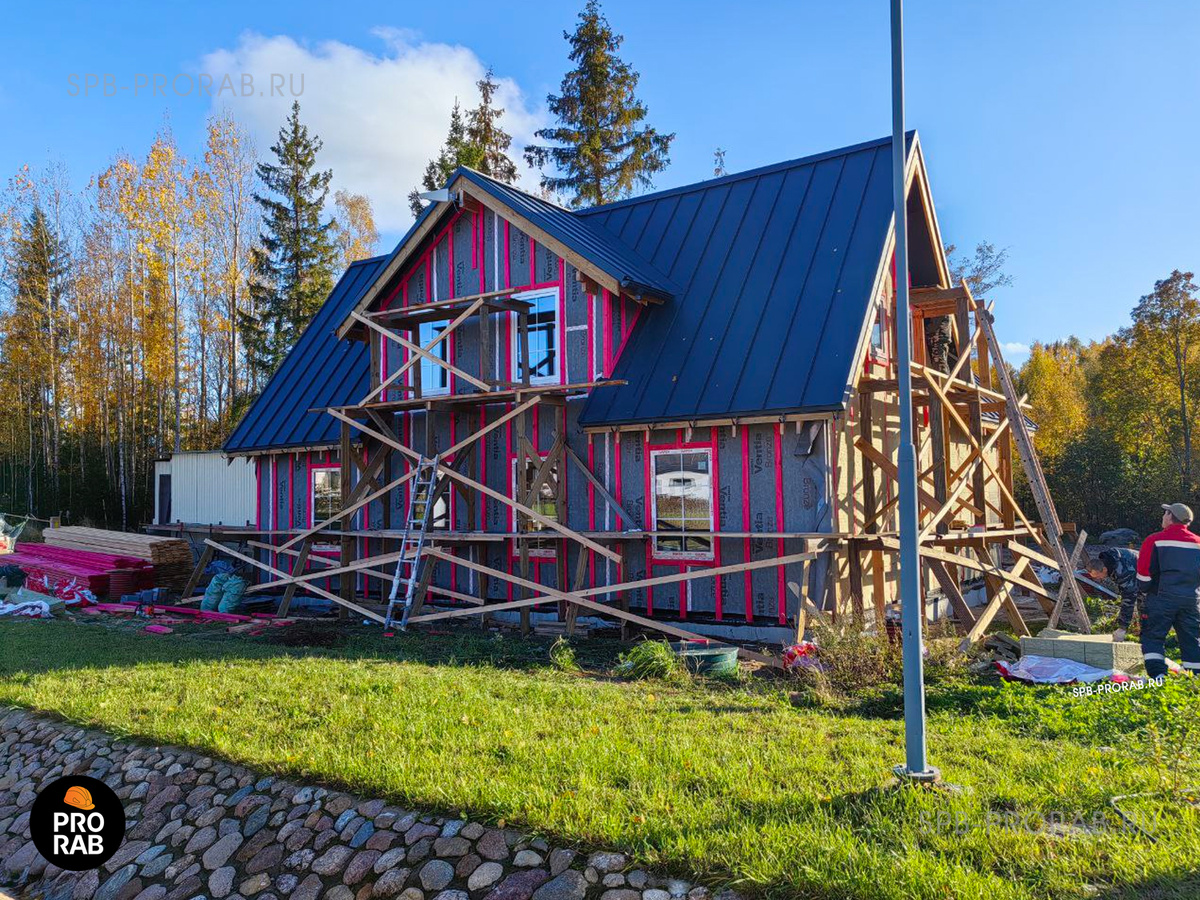 После перерыва мы приступили к фасадным работам. Сделали утепление. В дальнейшем на фасад будем смонтирована доска с имитацией бруса.