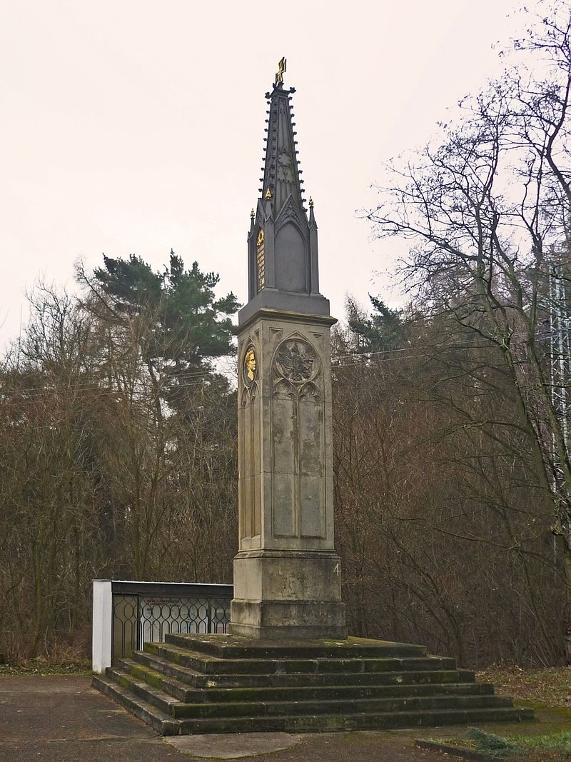 Таким образом, поле боя при Кульме уже в первой половине XIX века украсили сразу три монумента. В 1818 году возле деревни Арбезау, где прусские войска приняли удар Вандама, появился типовой памятник по проекту Шинкеля, увенчанный Железным крестом, символом победы при Кульме для русских войск. Вскоре, в 1825 году, через дорогу появился куда более масштабный австрийский монумент, персонально увековечивший генерала И. Коллоредо-Мансфельда, отличившегося при окружении неприятеля и скончавшегося незадолго до установки монумента. Чугунный обелиск высотой 17 метров, выполненный по проекту подполковника Урланди пражским скульптором В. Прахером, увенчан австрийским двуглавым орлом, держащим позолоченный лавровый венок. Переднюю грань монумента украшает профиль Коллоредо, под которым помещены все его ордена и скульптура скорбящего льва. На соседних с профилем гранях указаны даты рождения и смерти генерала, а на задней грани выполнен в цвете герб рода Коллоредо. Ниже, на постаменте с трёх сторон помещена эпитафия генералу, а сзади – надпись «Арбезау. 17 сентября 1813», увековечивающая, таким образом, не сражение при Кульме, а отражение повторной попытки прорыва неприятеля.