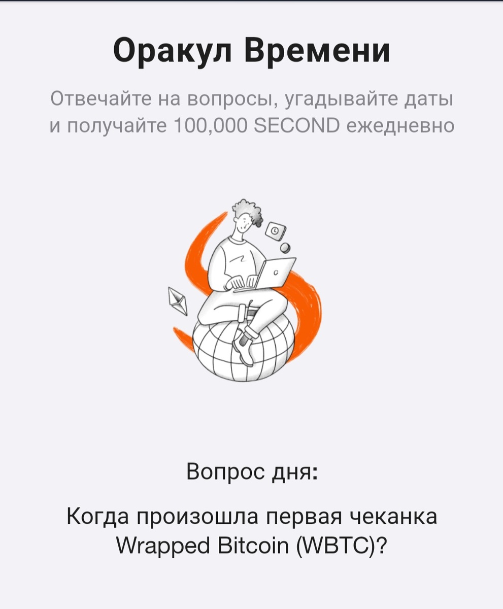 Time Farm Oracle. Вопрос от 15.10.2024 Когда произошла первая чеканка Wrapped Bitcoin (WBTC)? Ответ: 30.01.2019 Подпишись в телеграмм канал, чтобы следить за новостями проектов