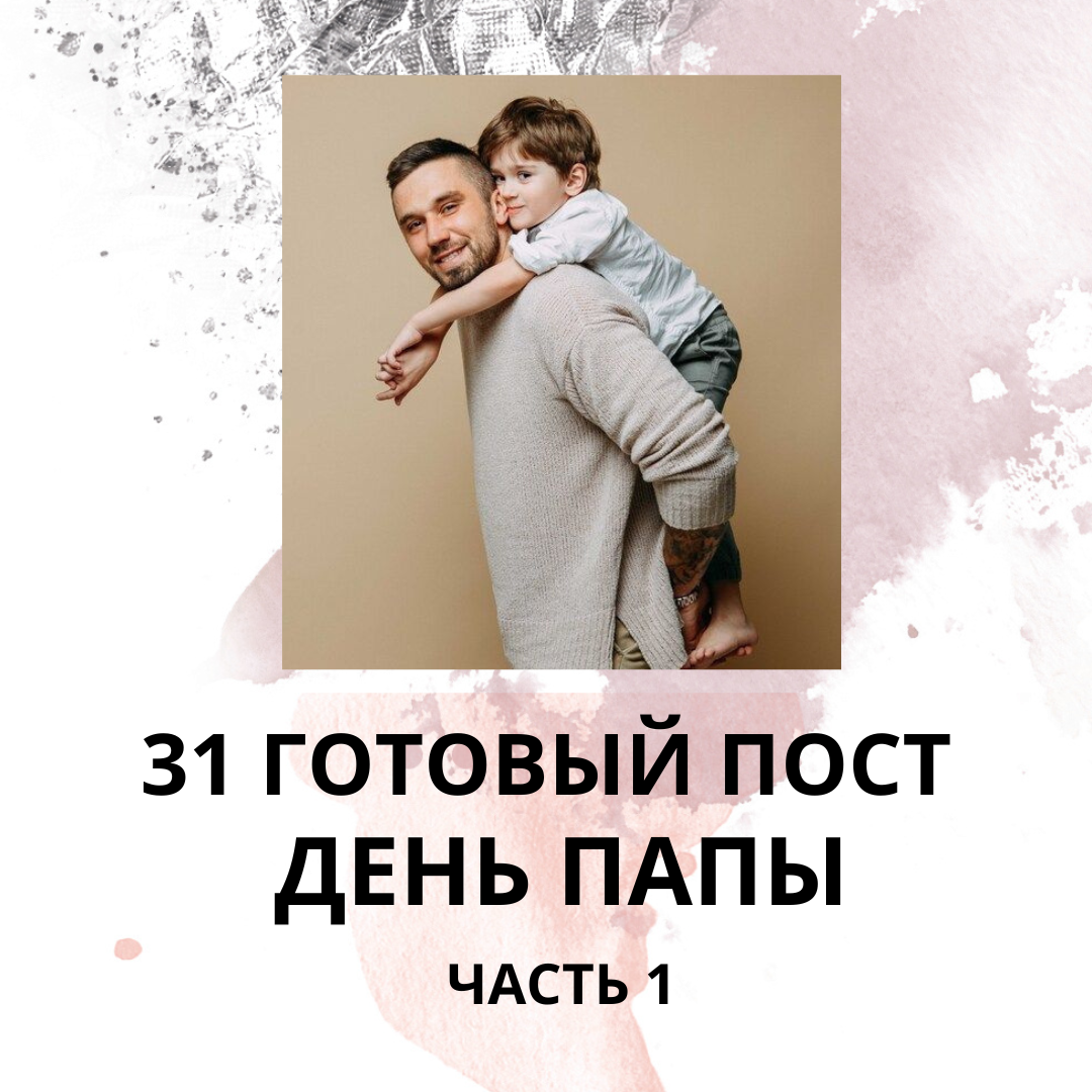 В поисках готовых постов для своих социальных сетей? Мы подготовили для Вас 31 Готовый пост, который Вы сможете использовать в своих социальных сетях для привлечения новых клиентов. Купить посты "День Папы" можете на ВБ: Темы постов: 1. История Дня Папы: как и когда он начал отмечаться? 2. Почему День Папы важен для семьи? 3. Идеи подарков для Дня Папы, которые можно сделать своими руками 4. Лучшие подарки для папы-работяги 5. Как отпраздновать День Папы с маленькими детьми? 6. Интересные факты про День Отца 7. Рецепты блюд на День Папы: что приготовить на праздник? 8. Почему отношения с отцом важны для детей? 9. Какие качества делают отца настоящим героем? 10. Как празднуют День Папы в разных странах мира? 11. Как оригинально поздравить отца с праздником? 12. Лучшие кинофильмы о папах и отцовстве 13. Психология отцовства: что значит быть хорошим отцом? 14. Как отцовство изменяется с возрастом: опыт поколений 15. Влияние отца на развитие личности ребенка 16. Смешные и трогательные исто