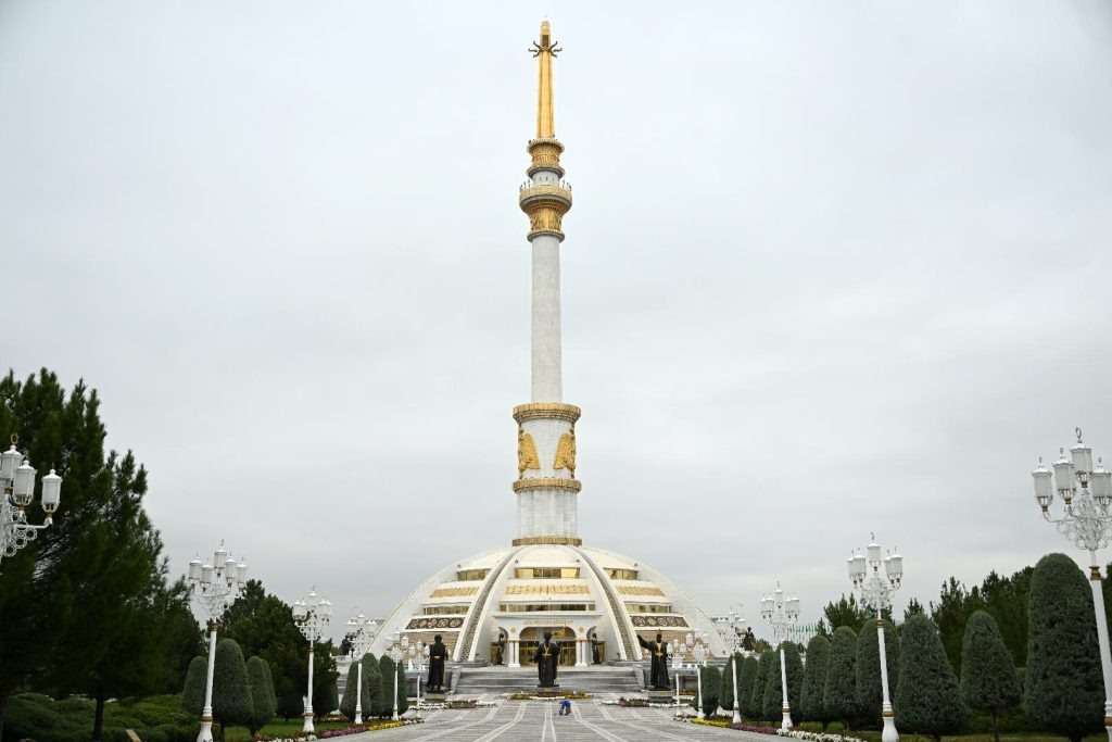 Нурланбек Шакиев Ашхабаддагы Эгемендүүлүк монументине гүлчамбар коюп эскерди