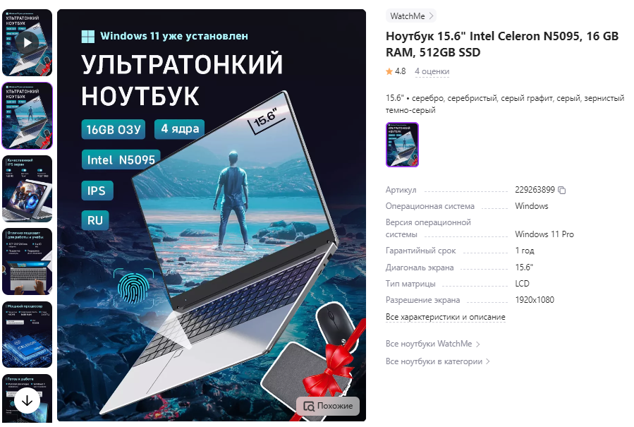 - Процессор: Intel Celeron Processor N5095, 2.0GHz, 4-ядерный