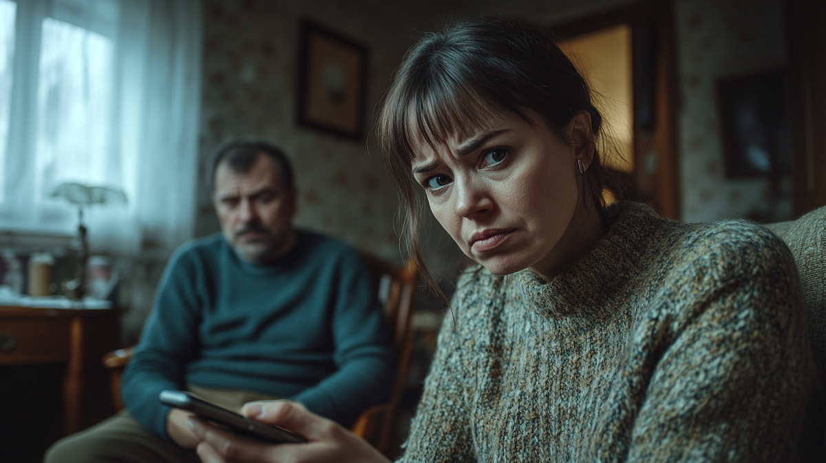 Ольга, не слушая мужа, собралась и ушла на работу за запасным телефоном. Сергей остался на кухне, ошеломленный тем, насколько его жена потеряла связь с реальностью.