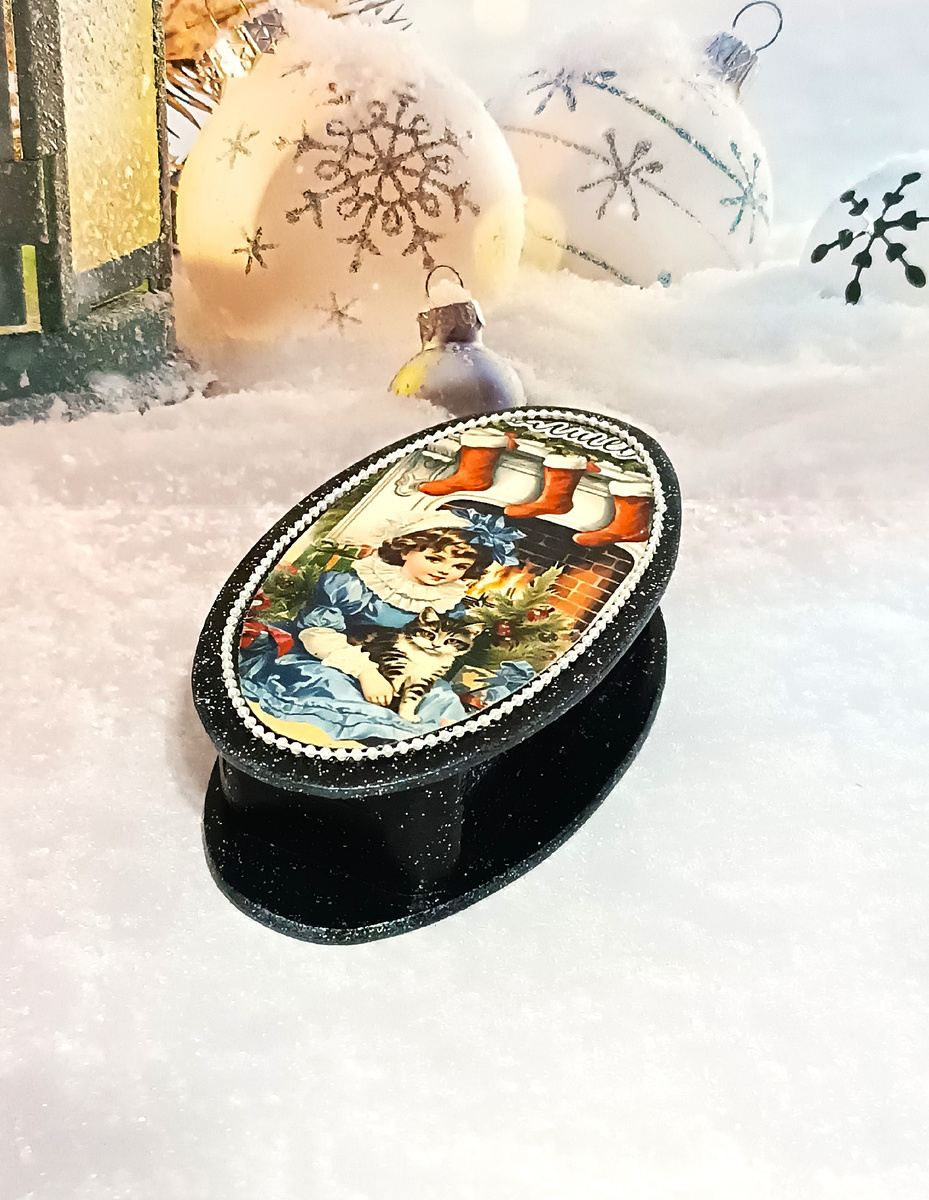 Да, официально и смело объявляю открытие новогоднего сезона в моей мастерской))). Ватные игрушки уже ненавязчиво приближали меня к зимним мотивам, но однозначно праздничной тематики пока не было. И вот она - первая украшалочка для Нового года 2024-2025. Я уже знаю, что она полетит в подарок хорошему человеку, и даже рада, что появился повод для начала ёлочно-сказочных работ))). Минус шкатулочки - ооооочень маленькая... Всего 8 см в длину и 4,5 см в ширину. И высота около 4 см. Конечно, весомые вещи в нее не положишь, бонбоньерка - одна из тех безделушек, предназначение которых "просто быть"😁. Хотя я всё-таки планирую поместить внутрь мелкий декор для украшения ёлочки. Для украшения крышки я использовала уже знакомые вам открытки, специально приобретенные в целях варварского расслаивания и использования в декупаже. Видео-МК появится на канале уже завтра, приглашаю к просмотру всех, кому интересна тема 🎆🤗!