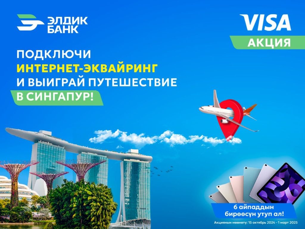 Элдик Банк жана Visa онлайн-бизнес ээлери үчүн акцияны башташат: Интернет-эквайрингге кошулуп, Сингапурга саякат же 6 iPadтын бирин утуп алуу мүмкүнчүлүгүнө ээ болуңуз. Катышыңыз, транзакцияларды көбөйтүңүз жана байгелерди утуп алыңыз! Акция 15.10.2024-жылдан 03.01.2025-жылга чейин жарактуу. 🌍 Элдик Банк жана Visa онлайн бизнес ээлери үчүн Сингапурга жолдомо утуп алуу мүмкүнчүлүгүн сунуштаган акцияны ишке киргизишет. 🎉 Акциянын башкы байгеси – Сингапурга эки кишилик саякат, ошондой эле орто этапта алты iPadтын бирин утуп алуу мүмкүнчүлүгү. 💳 Акцияга интернет эквайрингди туташтырган жана ар бири 500 сомдон кем эмес 30 транзакцияны жүргүзгөн юридикалык жактар жана жеке ишкерлер катыша алышат. 🛒 Интернет-эквайринг товарлар жана кызматтар үчүн төлөмдөрдү Интернет аркылуу кабыл алууга мүмкүндүк берет, бул өзгөчө онлайн дүкөндөр жана мобилдик тиркемелер үчүн маанилүү. 📅 Акция 2024-жылдын 15-октябрынан 2025-жылдын 1-мартына чейин созулуп, бизнесиңизди өнүктүрүүгө жана белектерди алууга э