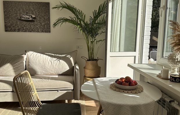 Очень уютный и светлый интерьер в доме 1960 года Как с ограниченным бюджетом превратить квартиру с «бабушкиным» ремонтом в современный комфортный интерьер? Узнайте в нашем новом румтуре! Герой румтура: дизайнер Кристина Патеракис обустроила уютную двушку для девушки-студентки. Кратко о квартире: квартира находится в доме 1960 года постройки в одном из самых старинных районов Москвы — Басманном районе. Из окон открывается потрясающий вид на зеленые насаждения и еще более старинные дома. На момент покупки квартира была в очень «убитом» состоянии. Меняли все: полы, стены, электрику, сантехнику. В результате небольшой перепланировки получилось обустроить прихожую, кухню-гостиную, спальню и совмещенный санузел. Посмотрите, как оформили уютный интерьер в стиле бохо — он отражает внутренний мир своей хозяйки, ее ценности и образ жизни, создает хорошее настроение, радуя каждой деталью. Площадь кухни всего 5 кв.м, но здесь удалось разместить все самое необходимое для комфортной жизни молодой де