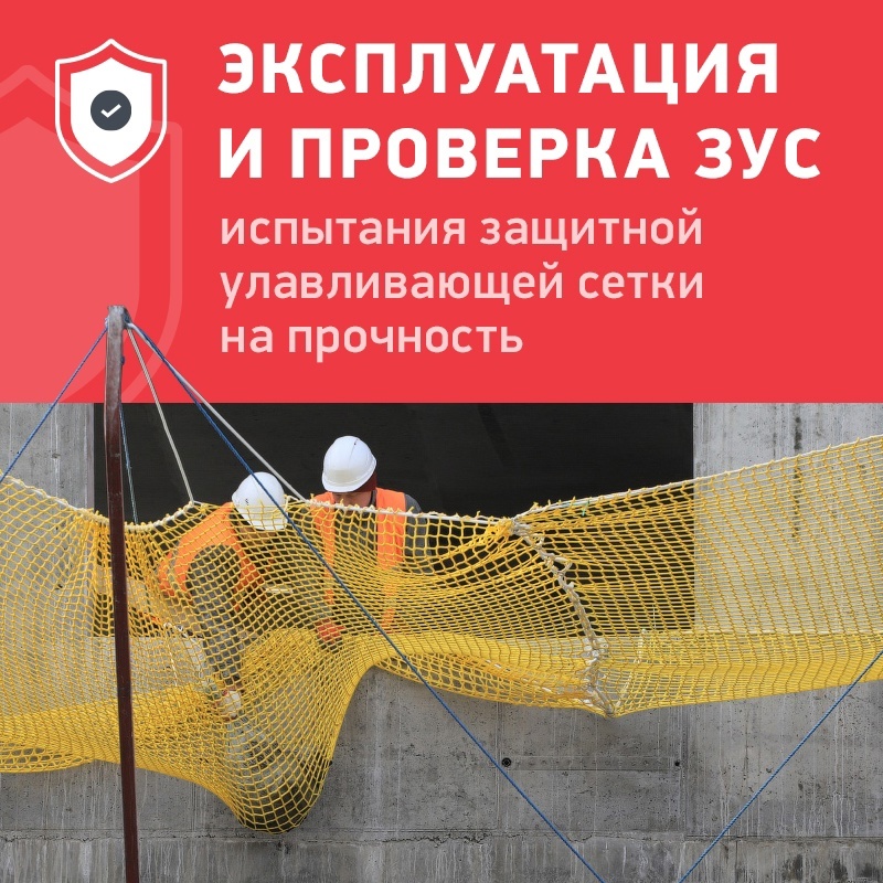 Эксплуатация и проверка ЗУС - испытания защитной улавливающей сетки на прочность