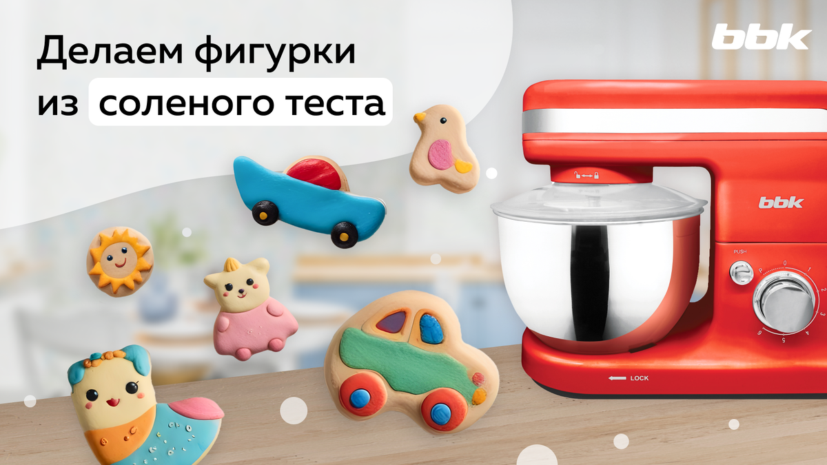 В мире, насыщенном технологиями, все сложнее занять ребенка чем-то полезным, чем-то, что займет их целиком и поможет развить не только детскую фантазию, но и создать веселые и запоминающиеся моменты для всей семьи. Но попытаться все же стоит. Сегодня мы расскажем об одном из таких необычных способов – это создание фигурок из соленого теста! Это увлекательный процесс, который поможет развить фантазию ребенка и мелкую моторику. Все что нам понадобится сами ингредиенты, а также миксера bbk KBM1042 для приготовления теста и последующая его сушка в электросушилке bbk BDH302M. Ингредиенты для приготовления: Сливочное масло или маргарин - 200 грамм; Ледяная вода – 300 миллилитров; Яйцо – 1 штука; Мука – 550-600 грамм; Уксус 9% – 1 чайная ложка; Соль – пол чайной ложки. Творческий процесс Создание фигурок из соленого теста – это не только увлекательное, но и образовательное занятие для детей. Они могут узнать о процессе приготовления теста, его текстуре и свойствах. Поместите все ингредиенты в