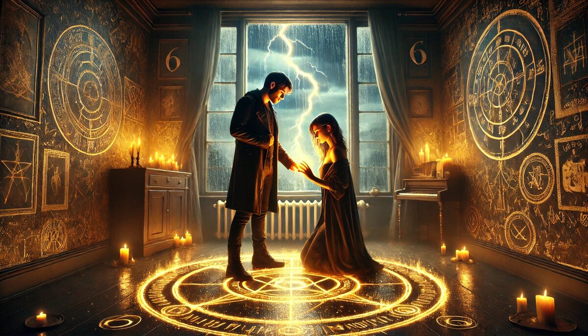 В тёмной комнате, освещённой лишь мерцающим светом нескольких свечей, Виктория и Алексей готовились к ритуалу, который мог стать их последним шансом остановить силу, пробудившуюся через древнее кольцо. Окна дома были закрыты плотными занавесками, и только ветер, изредка бьющийся о стекло, напоминал о том, что за их пределами всё ещё существовал реальный мир.