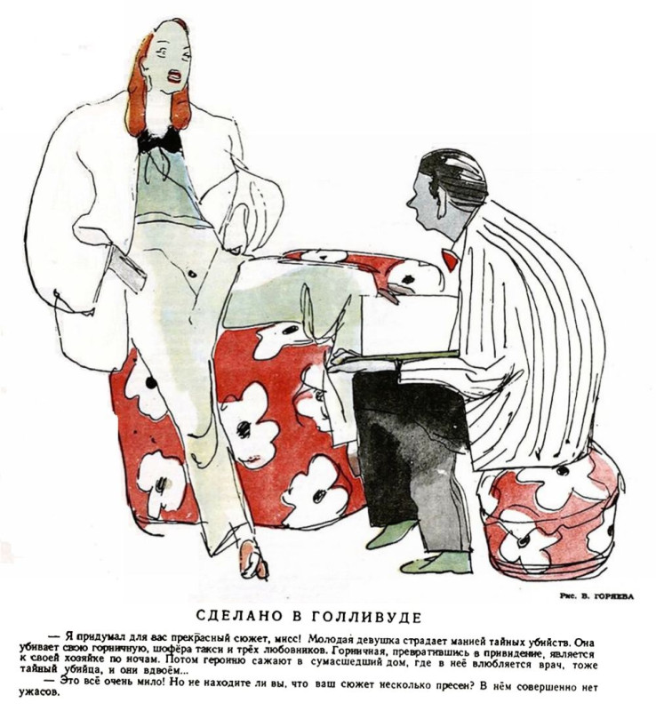 Старая советская и, как обычно, по-прежнему актуальная карикатура. Виталий Горяев (1910—1982). Сделано в Голливуде.