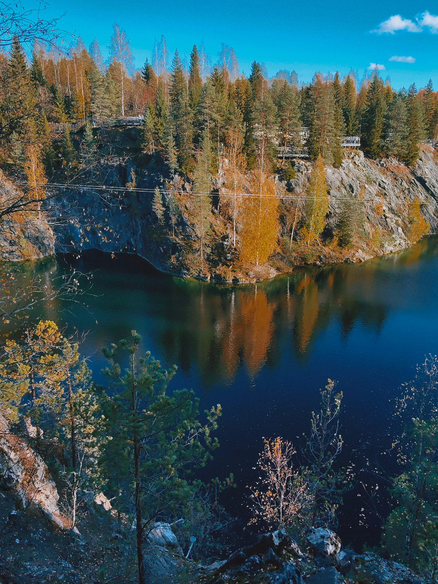 Собрались мы тут как то с мамой в Карелию. Я была много раз, а мама не была. Недавно она вышла на пенсию и перестала работать. Стараюсь ее теперь много выгуливать, чтобы она мир посмотрела. Так вот, случилась у нас поездка в Карелию. Это был двухдневный автобусный тур. Посетить должны были два места, это Рускеала и Кижи. Это были суббота и воскресенье. Рускеала стала другая, там теперь за все надо платить, за водопады, за эко тропу, печаль, еще и тросы повесили, раньше было более дикое место, красивее было по мне. Осенью конечно там красиво. Осенью везде красиво. Гуляли мы там часа три. Солнечно, прям повезло с погодой. Людей много, особенно школьников. Водопады тоже посетили, воды будто в них меньше стало. Самые мощные они весной. Повторюсь, людей очень много. Прям раздражали. После Рускеалы поехали в отель в Петрозаводске. Уже ночью туда приехали, поэтому из фотографий у меня только звёздное небо. Удивительно, но это фото я сняла на телефон. Помните, как долго я хотела именно этот