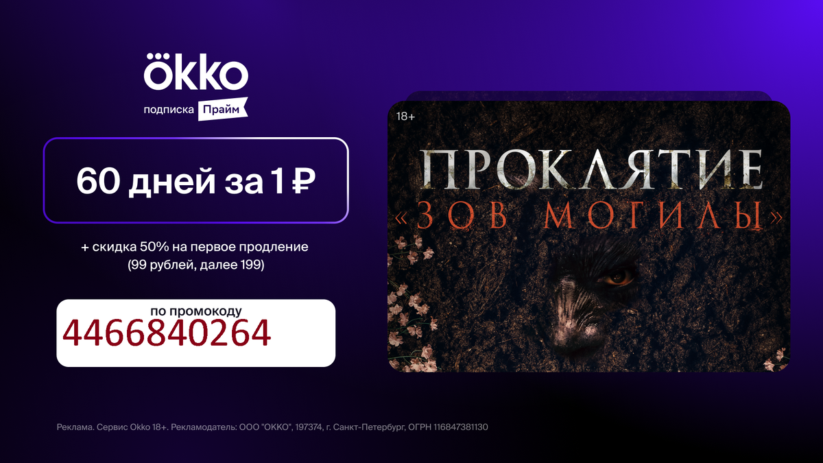 Зарегистрируйся по уникальному промокоду, и получи 60 дней подписки «Прайм» всего за 1 ₽, а также скидку 50% на первое платное продление (99 ₽, вместо 199 ₽) ссылка на подписку