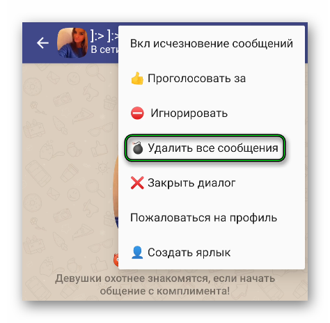 В данном сервисе стереть или редактировать конкретное сообщение невозможно. Можно только очистить весь диалог разом. Причем он пропадет только у вас, а у другого пользователя он останется. Если такой вариант вам подходит, то ознакомьтесь с дальнейшей инструкцией. Она предложена и для Android, и для iOS. Также в отдельном разделе статьи мы разберем функцию «Исчезающие сообщения».