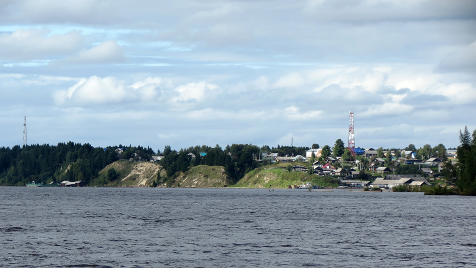 Через полчаса от Приобья вниз по течению на правом берегу встречают Шеркалы, первое русское село (а не казачья крепость) на Оби, основанное в 1595 году у хорошо заметных Трёх Братьев, городищ разных эпох, на первом из которых люди жили ещё до прихода угров, а на последнем в 14-15 веках обосновались коми, называвшие это поселение Шеркар. Оно сгорело в 16 веке, ну а русские обосновались уже в заливе, а не на мысу. Ныне из тысячи жителей села около трёхсот - ханты. Обезглавленная Спасская церковь (1904-11) кажется по виду лет на сто постарше. Вообще же удивительно, сколько русских церквей в этом северном краю. Ещё тут есть Шеркальский этнографический музей (1982) среднеобских ханты, большая часть экспонатов которого привезена из деревни Лохтокурт. У села - странный мостик на заливе, каменная часть которого явно перекинута через основное русло впадающей речки, а деревянная - над большой водой половодья. Такое ощущение, что тут размыло насыпь, причём не факт, что в этом году: А пристань чу