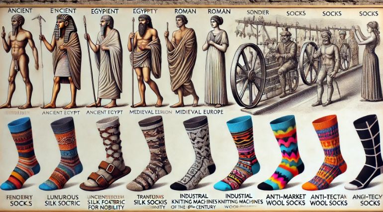 Первые упоминания о носках можно встретить в Древнем Египте и Риме. В то время это были не мягкие текстильные изделия, а скорее нечто, напоминающее обмотки или сандалии с вставками для пальцев. Основная функция носков в древности была защитной — охранять ноги от грязи, холода и повреждений.