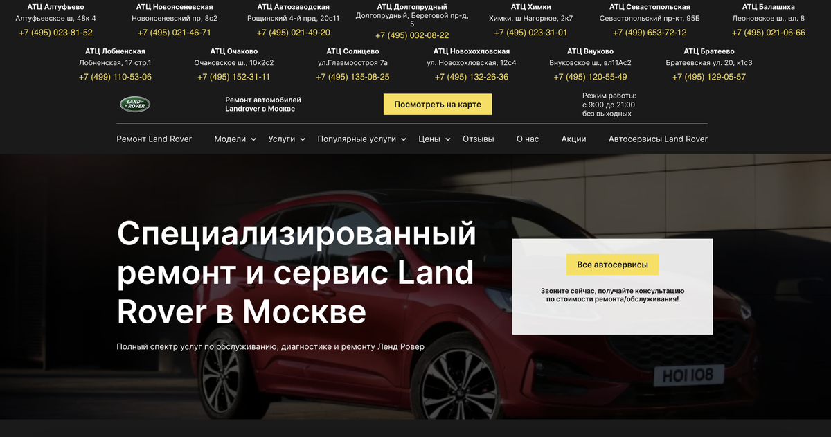 Владельцы Land Rover знают, что их автомобиль — это не просто средство передвижения, а символ надежности, комфорта и мощности. Чтобы ваш Ленд Ровер продолжал радовать вас безупречной работой на протяжении многих лет, важно доверять его обслуживание профессионалам. Мы — это специализированный автосервис, который предлагает полный спектр услуг для вашего Land Rover, гарантируя качество и надежность на каждом этапе! 🛠️ Какие услуги мы предлагаем? 🛠️ Мы выполняем полный спектр работ по техническому обслуживанию, диагностике и ремонту всех моделей Land Rover: ✅ Техническое обслуживание ✅ Комплексная диагностика ✅ Ремонт двигателя (включая дизельные) ✅ Ремонт трансмиссии ✅ Ремонт подвески ✅ Ремонт тормозной системы ✅ Ремонт рулевого управления ✅ Ремонт выхлопной системы ✅ Ремонт электрооборудования ✅ Ремонт автокондиционера ✅ Ремонт системы отопления и охлаждения ✅ Ремонт топливной системы ✅ Сход-развал Этапы работы: 1️⃣ Оставьте заявку на нашем сайте https://landrover-autoservice.ru/